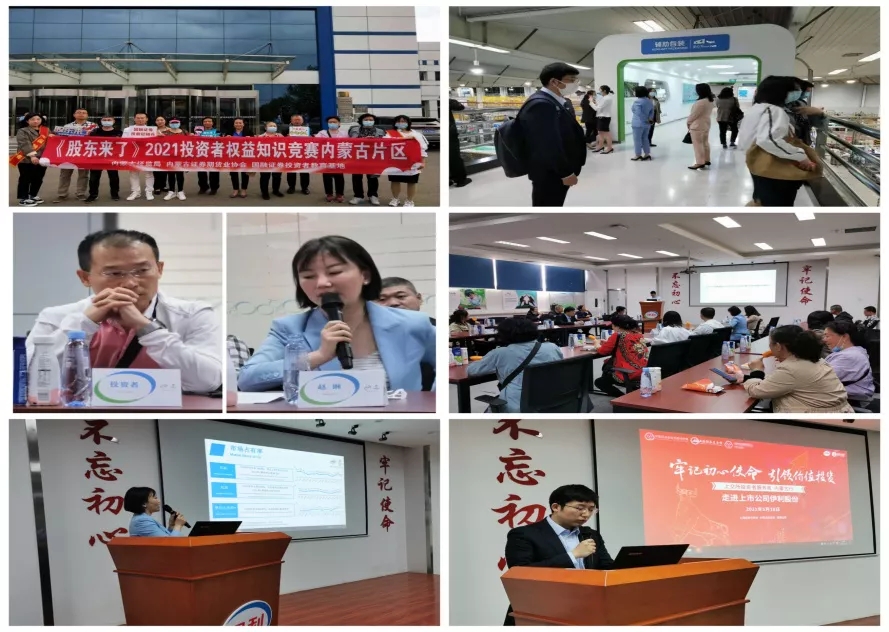 為進(jìn)一步引導(dǎo)和規(guī)范上市公司的投資者關(guān)系管理,切實(shí)保護(hù)投資者尤其是中小投資者的合法權(quán)益,推動(dòng)投資者樹(shù)立股東意識(shí),不斷增強(qiáng)行使股東權(quán)利的主動(dòng)性,樹(shù)立理性投資、價(jià)值投資的理念,值此“5·15全國(guó)投資者保護(hù)宣傳日”暨內(nèi)蒙古片區(qū)《股東來(lái)了》2021投資者權(quán)益知識(shí)競(jìng)賽開(kāi)賽之際,內(nèi)蒙古證監(jiān)局、上海證券交易所、內(nèi)蒙古證券期貨業(yè)協(xié)會(huì)聯(lián)合國(guó)融證券股份有限公司于2021年5月18日帶領(lǐng)中小投資者走進(jìn)上市公司——內(nèi)蒙古伊利實(shí)業(yè)集團(tuán)股份有限公司(以下簡(jiǎn)稱(chēng)伊利集團(tuán)),參觀(guān)了伊利集團(tuán)總部、草原乳文化博物館、液態(tài)奶生產(chǎn)車(chē)間,并就投資者所關(guān)注的相關(guān)問(wèn)題與伊利集團(tuán)高管進(jìn)行面對(duì)面互動(dòng)交流。