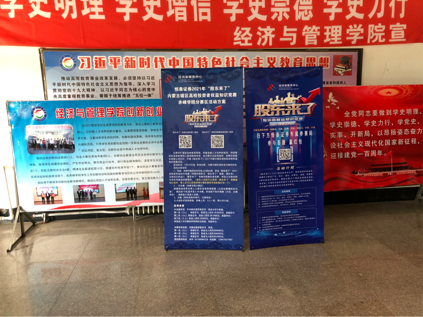 5月25日,由內(nèi)蒙古證監(jiān)局、內(nèi)蒙古證券期貨業(yè)協(xié)會(huì)指導(dǎo),恒泰證券組織開(kāi)展的《股東來(lái)了》2021內(nèi)蒙古片區(qū)走進(jìn)高校系列活動(dòng)——走進(jìn)赤峰學(xué)院圓滿舉辦,赤峰學(xué)院師生100余人參加?;顒?dòng)旨在有效開(kāi)展《股東來(lái)了》2021投資者權(quán)益知識(shí)競(jìng)賽,提高在校大學(xué)生對(duì)證券市場(chǎng)的正確認(rèn)識(shí),普及金融知識(shí),防范金融風(fēng)險(xiǎn)。