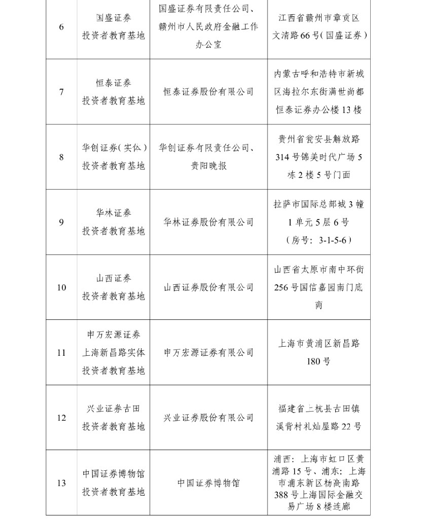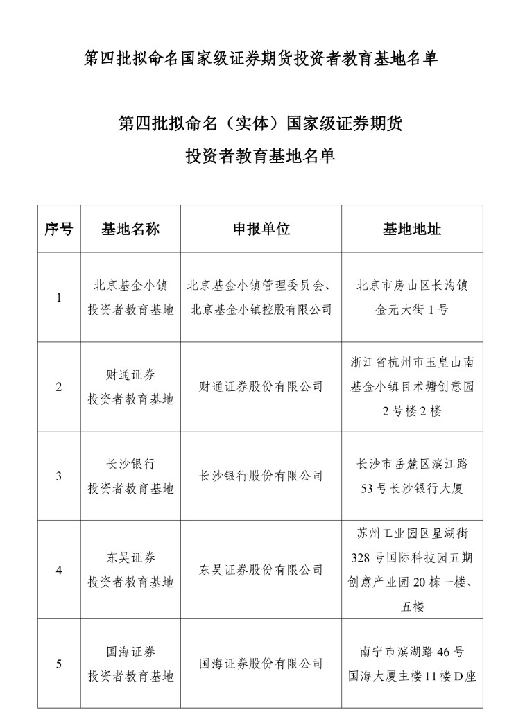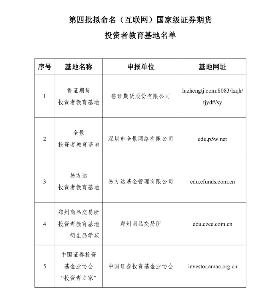 第四批擬命名國(guó)家級(jí)證券期貨投資者教育基地如下: