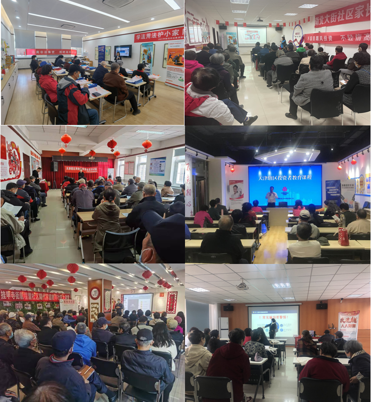 此階段宣傳活動(dòng)以河西區(qū)各街道黨群服務(wù)中心及居家養(yǎng)老服務(wù)中心為工作圓心,以點(diǎn)帶面,從線到片,形成區(qū)域效應(yīng)。通過(guò)懸掛宣傳條幅、樹立宣傳易拉寶、張貼宣傳海報(bào)等方式營(yíng)造宣傳氛圍;通過(guò)專業(yè)講師授課、發(fā)放宣傳彩頁(yè),播放防范非法集資視頻等方式開展宣傳,引導(dǎo)大家熟知正確投資理財(cái)相關(guān)常識(shí),幫助廣大群眾識(shí)別投資理財(cái)常見(jiàn)誤區(qū),樹立正確投資理財(cái)觀念,提高風(fēng)險(xiǎn)防范意識(shí)和能力。