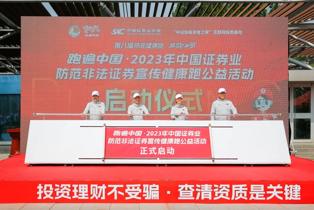 為貫徹落實(shí)黨的二十大“依法將各類金融活動(dòng)全部納入監(jiān)管”及《關(guān)于依法從嚴(yán)打擊證券違法活動(dòng)的意見》《關(guān)于開展2023年防范非法證券期貨宣傳活動(dòng)的通知》有關(guān)要求,在中國(guó)證監(jiān)會(huì)市場(chǎng)監(jiān)管二部指導(dǎo)下,中國(guó)證券業(yè)協(xié)會(huì)聯(lián)合中國(guó)田徑協(xié)會(huì)、“中證協(xié)投資者之家”互聯(lián)網(wǎng)投教基地于2023年5月15日在京舉行了“跑遍中國(guó)·2023年中國(guó)證券業(yè)防范非法證券宣傳健康跑公益活動(dòng)”啟動(dòng)儀式。全國(guó)政協(xié)委員、中國(guó)證監(jiān)會(huì)市場(chǎng)二部一級(jí)巡視員劉云峰,中國(guó)證券業(yè)協(xié)會(huì)副會(huì)長(zhǎng)孟宥慈,中國(guó)田徑協(xié)會(huì)產(chǎn)業(yè)發(fā)展部部長(zhǎng)高山,中國(guó)銀河證券執(zhí)委會(huì)委員、合規(guī)總監(jiān)、首席風(fēng)險(xiǎn)官梁世鵬等領(lǐng)導(dǎo)出席啟動(dòng)儀式。
