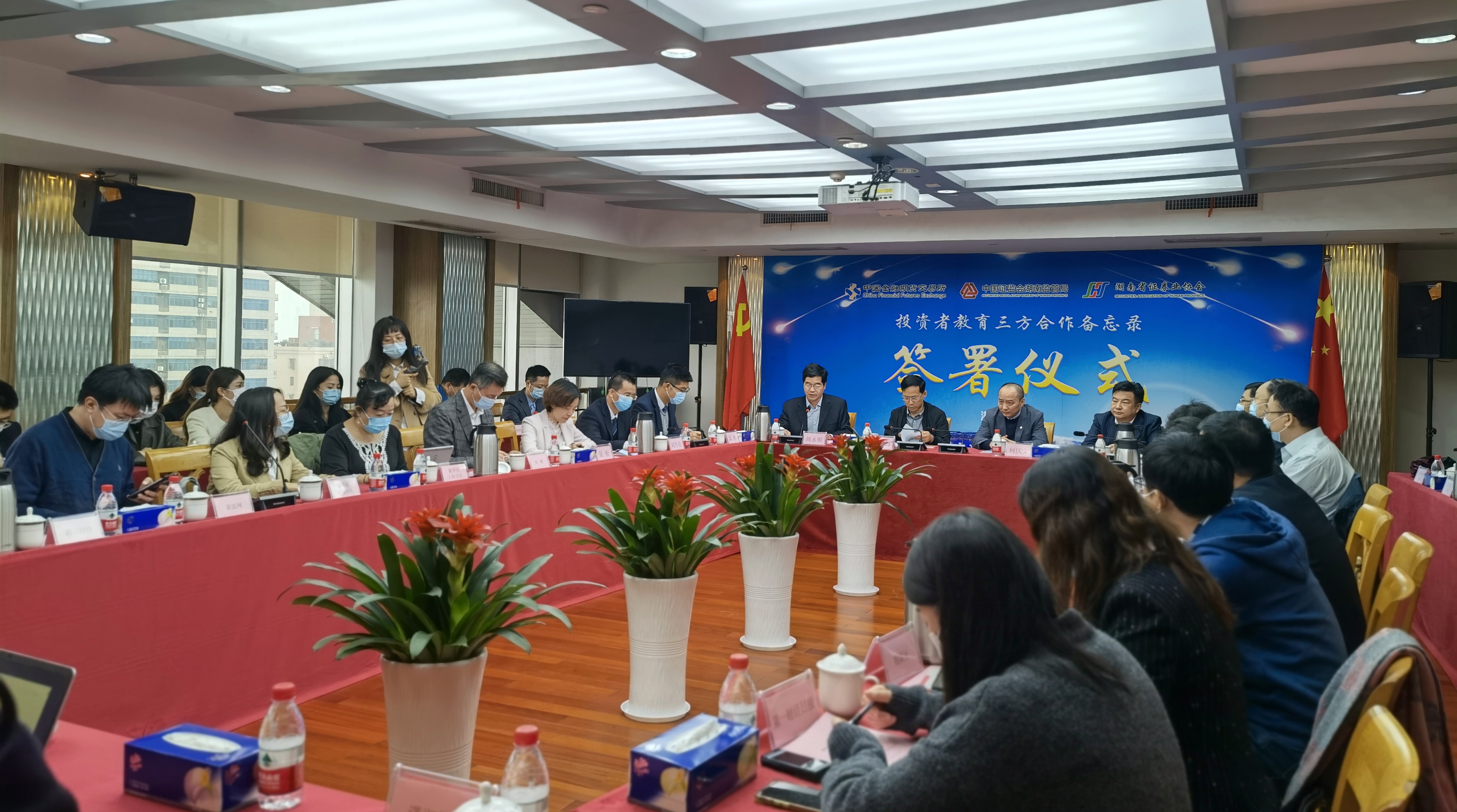 湖南證監(jiān)局與中國金融期貨交易所、湖南省證券業(yè)協(xié)會簽署投資者教育合作備忘錄簽約現(xiàn)場(供圖:湖南證監(jiān)局)